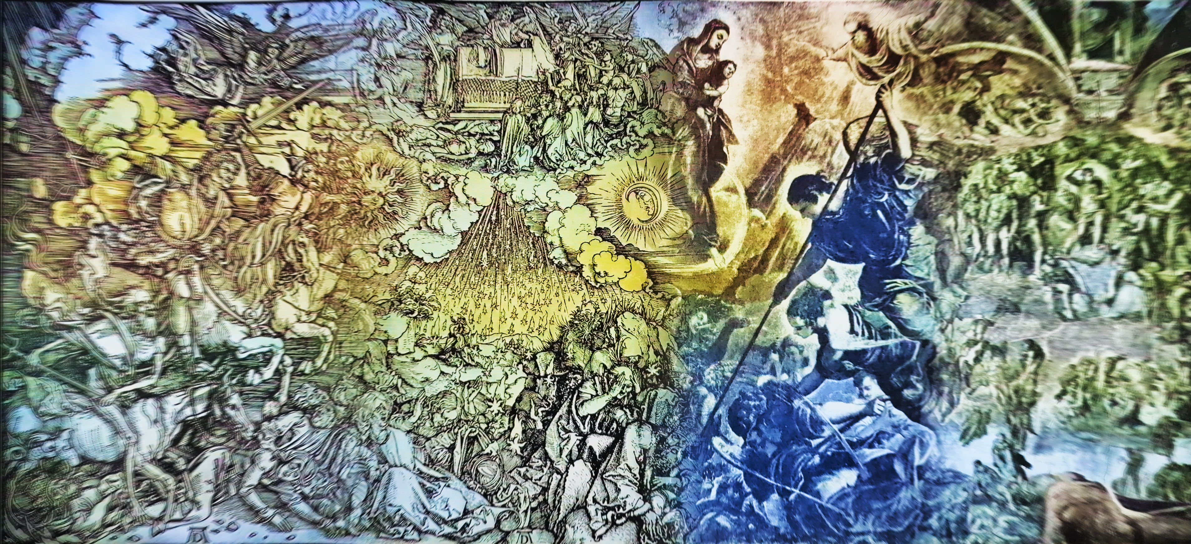 - Derefter Åbenbaringens basuner: Domme over jorden, med den syvende basun som kulmination af begivenhederne under basun-sekvensen.