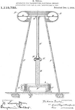 [158] Twenty First Century Books, ”APPARATUS FOR TRANSMITTING ELECTRICAL ENERGY”; http://www.tfcbooks.com/ patents/tower.htm