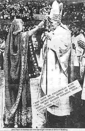 billedet af paven, der får malet et mærke på panden af en Shiva præstinde er et meget stærkt bevis på, at paven er falsk, når han, som påstår at være Kristi vikar, modtager et afgudsmærke på panden af en afgudspræstinde. Derved tilsidesætter han disse ord: ”Så siger Herren, lær ikke hedningernes vej.” Jer. 10:2.