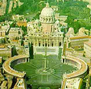 | Peterspladsen er et stærkt billede på frugtbarhedskuldten. Søjlekransen rundt om pladsen symboliserer kvindens kønsorgan. Og Obelisken i midten mandens. | To okkulte trekanter, der udgør Davidsstjernen |