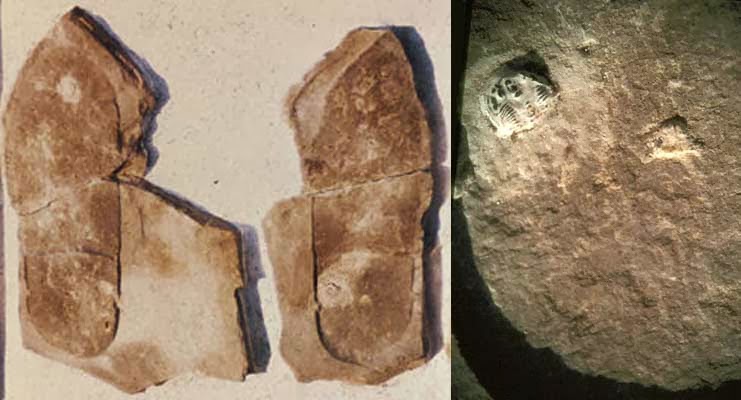 I 1968 opdagede William J. Meister et forstenet aftryk af en skosål der har trådt på en trilobit (Meister aftrykket), der har fået alder fra det kambriske jordlag, eller er det omvendt? (problematikken med cirkulært ræsonnement) - men altså mellem 542-488 millioner år gammelt - og der er ikke de undskyldninger der ikke er jamret fra den evolutionære lejr. Der er blevet fundet fodspor fra sko og sandaler i mange lag, men hver eneste gang bliver det afvist som falsum, for det kan ikke lade sig gøre. Faktum er bare, at Jorden skriger til folkene at deres teori er forkert! De er vitterligt ignoranter med vilje (2. Pet. 3:5).