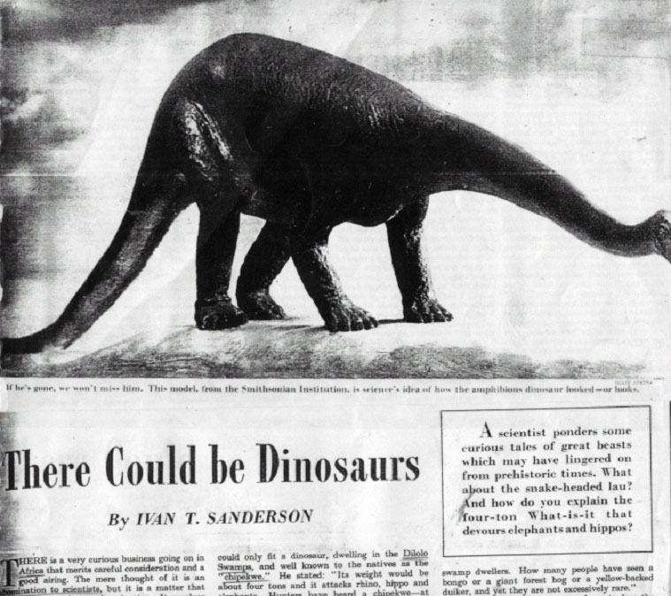 Jeg talte med mine kolleger om det, og som forventet lænede de sig tilbage i barndommens læresætninger, og grinede højlydt af påstanden. De kunne tilmed garantere mig, at dinosaurerne var uddøde for millioner af år siden. Jeg spurgte om de havde talt med eller læst om nogle, der havde set dinosaurer, og ingen af dem havde skænket det en tanke, at undersøge om der fandtes sådanne påstande. Deres umiddelbare forsikring var, at sådanne mennesker har set forkert, eller troet de så noget de ikke så. Ja, så er den sag lukket, og man kan fortsætte i troen på egen alvidenhed.