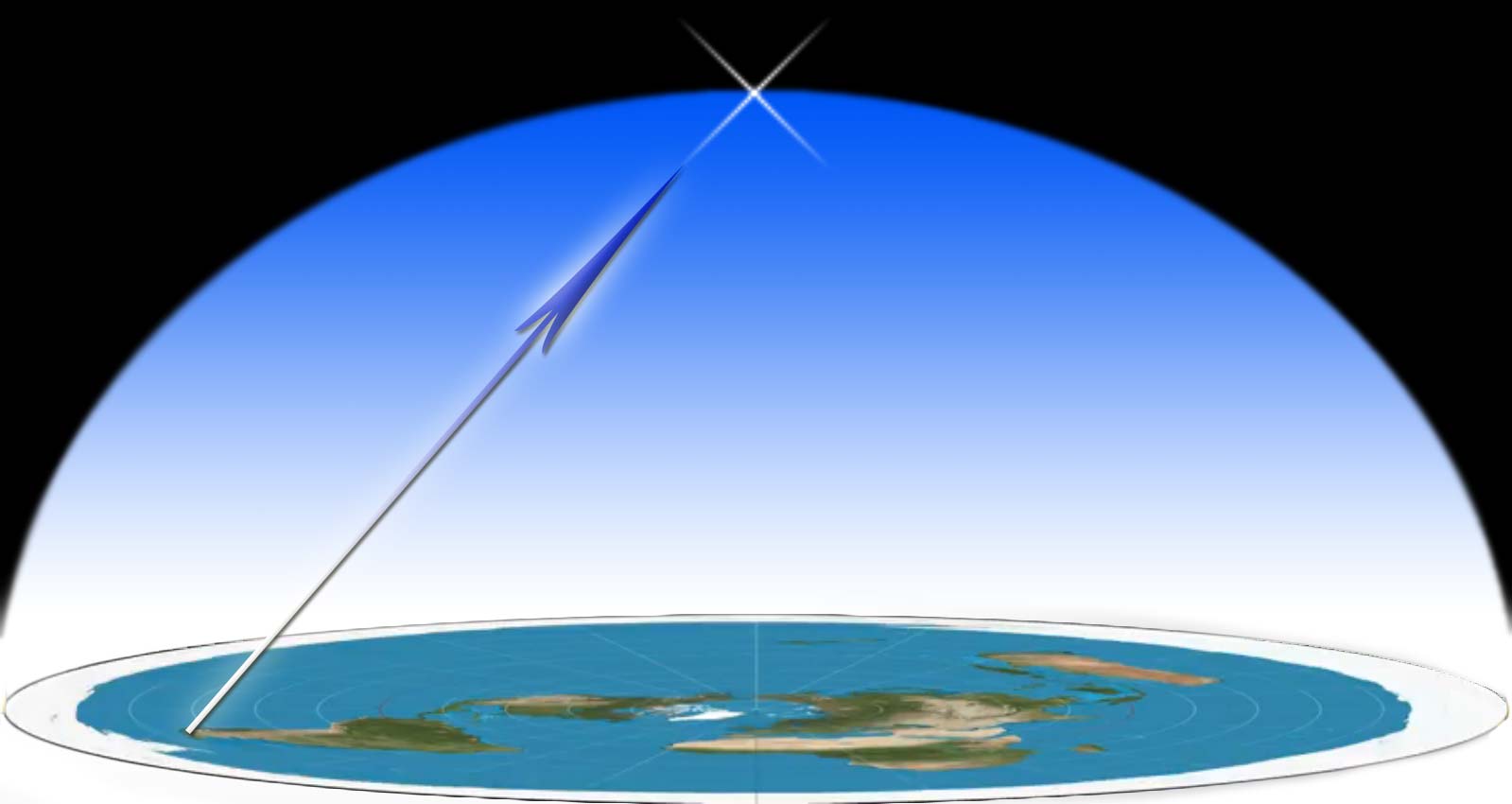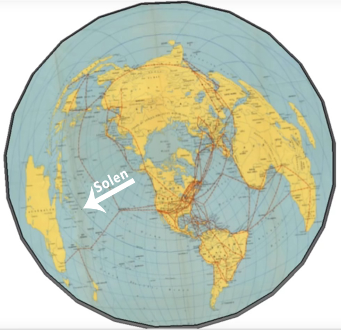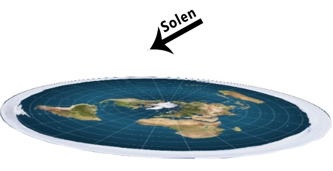 Her er et kort de har justeret efter bedste evne, til at vise landjorden korrekt. Hvis en lille sol på 52km i diameter skal oplyse Jorden, vil Sydafrika og Sydbrasilien, tillige med Nordnorge og det nordlige Rusland aldrig se dagens lys.
