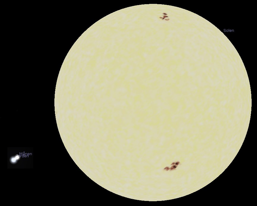 Det kan med andre ord kun lade sig gøre at månen er fuldt oplyst, hvis solen er langt større, og ikke samme størrelse som månen.