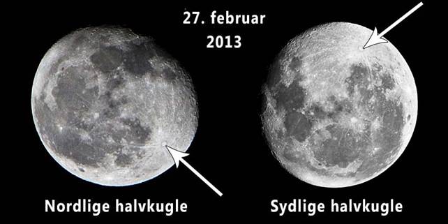 Forestil dig dette. Sydargentina, Nordargentina og Nordamerika er i samme tidszone, og derfor kan månen ses alle tre steder på samme tidspunkt. Men månen vil se helt forskellig ud, som illustreret her: