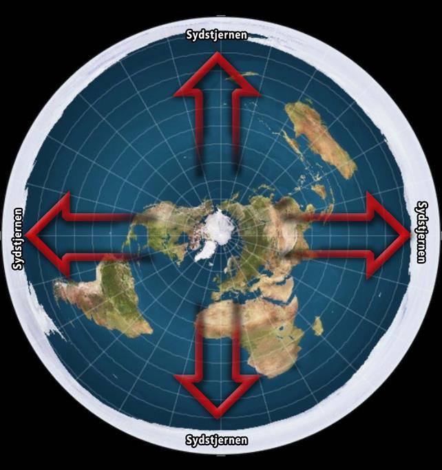 Syd er naturligvis i alle retninger, og derfor er der ingen Sydstjerne, som der er en Nordstjerne. At Sydstjernen kan ses, lader sig kun forklare med globus modellen. På en flad Jord ville Sydstjernen kunne ses fra centrum (Nord) ligesom Nordstjernen ville kunne ses fra alle yderkanter af Jorden. Men det er ikke det vi observerer, når vi kikker ud i rummet. På en globus ses stjernehimmelen dreje mod uret på Nordpolen, og med uret på Sydpolen (se videoer herunder) - og jeg har læst FT forklaringer, og set videoer forklare fænomenet. Det er ligesom at høre en evolutionsteoretiker forklare hvordan livet er opstået, på trods af at der øves vold på alle videnskabelige love og observationer.