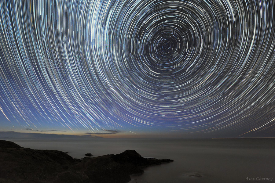 Står man midt på Nordpolen og kikker op, vil man se en perfekt cirkulær bevægelse af stjernespor omkring Nordstjernen, Polaris: