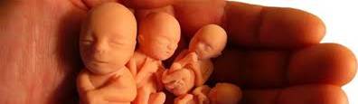 Vi skal endnu et øjeblik beskæftige os med denne intelligente ’brugsanvisning’. Alle ved, at efter undfangelsen deler cellen sig først til 2, så til 4, 8, 16 celler, osv. I begyndelsen ligner det kun en klump celler, men meget tidligt begynder cellerne at specialisere sig, og efter blot en til to uger kan det ses, at det bliver til et menneske På fotoet til venstre ses fire små menneskefostre, som er fra 5-12 uger gamle, og de burde ikke være endt som aborter, som er et andet ord for fosterdrab.Et menneskeliv er nemlig fantastisk. Tænk, at hver eneste celle indeholder alle de informationer, som er nødvendige for, at den kan udvikle sig videre til et menneske. Det hele sker i et fantastisk samarbejde med de øvrige celler i kroppen, hvor de med et slags kodesprog ’aftaler’, hvad den og den celle skal udvikle sig til. Nogle celler bevæger sig op til det, der skal blive hoved, andre ned til benene, og atter andre til hjertet. Pludselig er der celler, som har ’fået besked på’ at danne næse, mund, øjne, hår osv. Og dette sker! Andre får besked på at blive til to ben, med to fødder og 10 tæer, og andre til et kredsløb, som skal forbindes med hjerte og lunger for at fungere. Og dette sker. For samtidig er der andre celler, som har fået ’besked’ på at blive til et hjerte, og snart efter begynder disse celler pludselig til rytmisk at pumpe det blod rundt, som andre celler har fået besked på at danne.