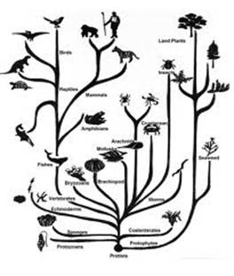 Alle har nok set de udviklingsstamtavler, hvor man ved roden ser de første primitive dyr eller noget uorganisk stof. Efterhånden, som man kommer højere op på stamtavlen, ser man ’udviklingen’ fra det primitive til de mere højerestående dyr og planter. Til højre ses en af disse typiske opstillinger.Men denne rækkefølge findes kun i fantasien. Den eksisterer ikke i virkeligheden. Der eksisterer, som tidligere nævnt, ikke en eneste overgangsform fra et dyr til et andet. En professor. Frank L. Marsh siger det således: