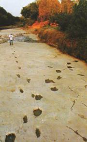 2. En amerikansk redaktør ved navn Walter Lang beskriver, hvordan han besøgte dette område sammen med nogle venner. De spurgte den pige, der solgte billetter til Dinosaurland, hvordan det kunne være, at ’litteraturen om parken ikke nævnte noget om fossile fodspor af mennesker’. Hun svarede: ’Vi må helst ikke officielt indrømme, at der [også] er menneskespor’[40]. Årsagen hertil er åbenbar: Sådanne fund skal ties ihjel, fordi de ikke passer ind i udviklingsskemaet[41]. Ifølge dette skema uddøde dinosaurerne jo mange millioner år før menneskets opståen. En dr. A. E. Wilder Smith, som er en af pionererne mod den gængse udviklingslære, siger da også: ’Et dinosaurus-spor samme sted som et menneskeligt fodspor er nok til at vælte hele den darwinistiske teori og revolutionere al biologi i dag[42].