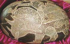 Gennem tiden er der også fundet en mængde menneskegjorte ting. Dinosaurer er fx fundet afbilledet på en mængde keramikkrukker, helleristninger og på indridsninger som den til venstre, og på keramikkrukker som den, vi ser til højre[45].
