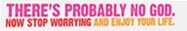 Denne reklame for en religion, der med ordet "formentlig" eller "sandsynligvis" forsøger at overbevise verden om at Gud ikke findes, klistres på busser, skilte og bygninger i England1: