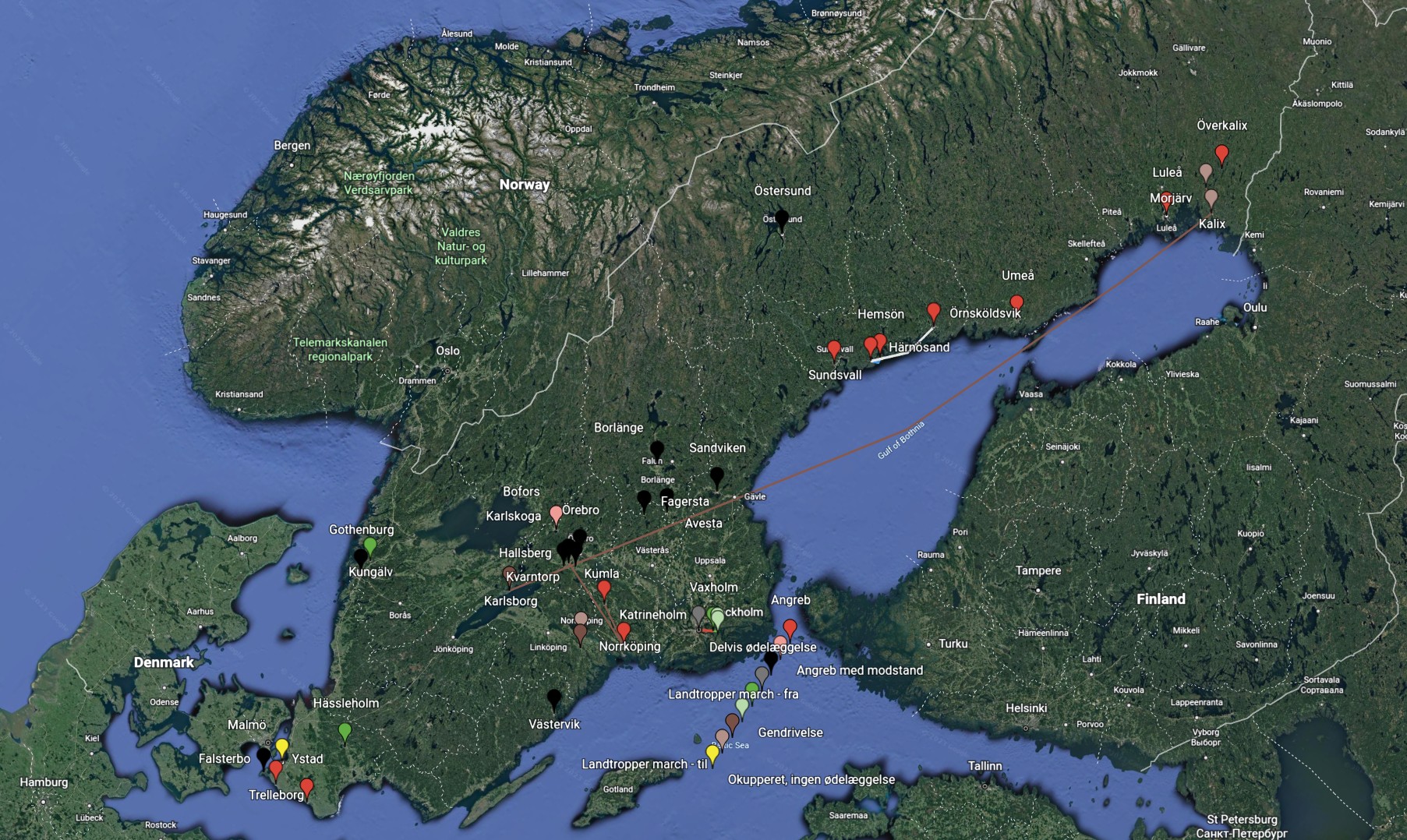Birger så Sverige blive invaderet af fremmede hære. Hvem de er og hvorfra de kommer fik han ikke at se, men Ron White så at Rusland vil overtage Nordnorge, og for at indtage Norge, kan hærene gå igennem Sverige, så måske er det russerne der også angriber Sverige. Han så hvordan hele byer blev jævnet med jorden, og hvordan folket blev behandlet, og det er som historien igen og igen har vist det. Forhånelse og hård behandling af folket. Jeg har prøvet at lave en oversigt over de nævnte steder i Sverige, "på dette kort". (Du kan også downloade kort-data og åbne kortet på din egen computer med Google Earth).