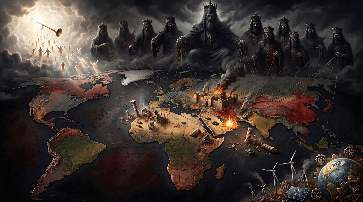Dermed bliver de ti kongeriger mere end et teologisk emne. De bliver den nøgle, der forklarer, hvorfor nation efter nation er blevet omformet, og hvorfor Iran nu står i centrum. Hvis verden bevæger sig mod store regionale blokke, og hvis den mellemøstlige region skal samles i en ny struktur, så kan Iran ikke blive stående uberørt som den gamle, suveræne, revolutionære stormagt. Iran må brydes ned, bøjes eller omformes, så det kan indpasses i den nye arkitektur. Derfor ligner det, Iran nu gennemgår, ikke bare endnu en krig. Det ligner den synlige tilrettelæggelse af det, Bibelen for længe siden varslede - at de ti konger skal træde frem, før den endelige samling af magten finder sted.