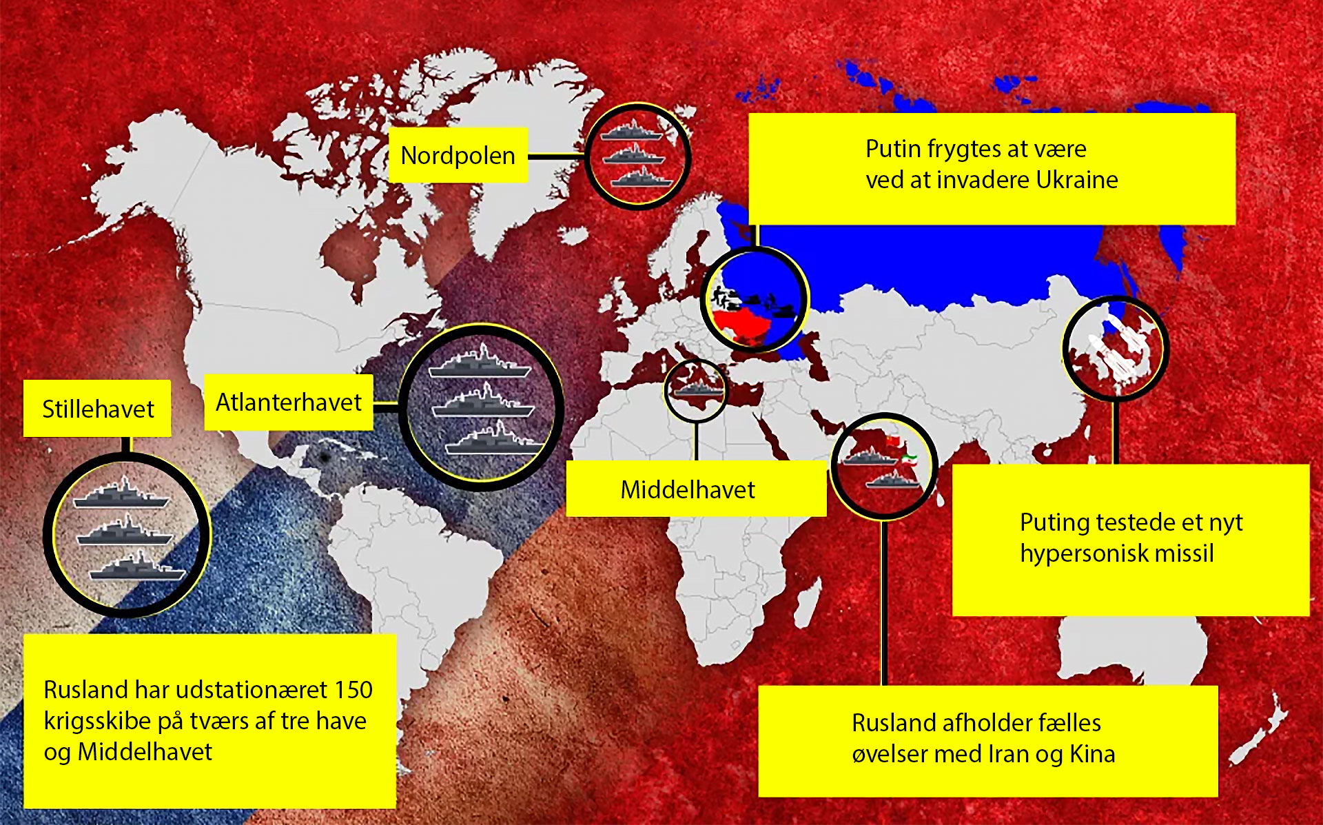 Samtidig har de et billede af et Russisk krigsskib i Storebælt på vej til Nordsøen