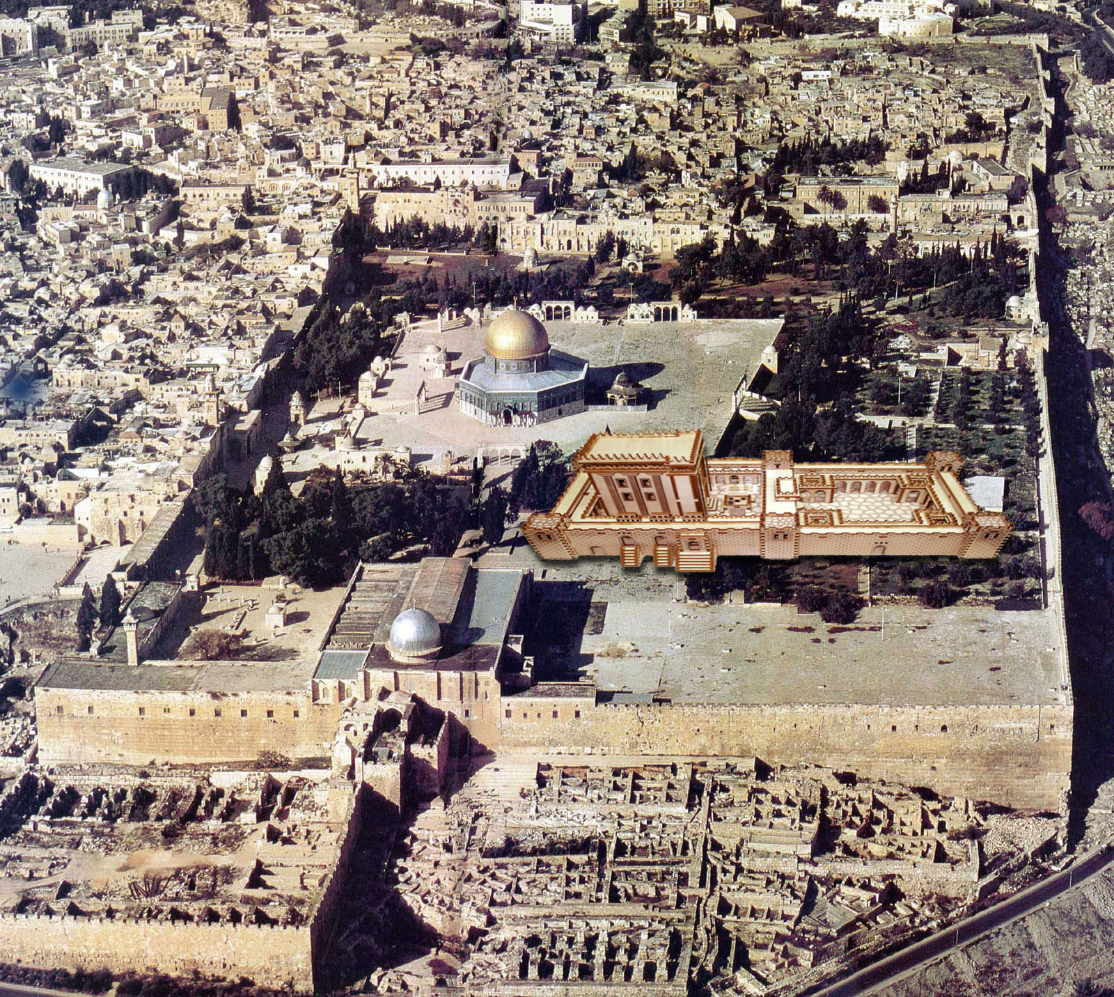 | “ | al-Aqsa moskeen og Klippemoskeen vil bestå til den sidste dag. Ingen vil kunne skade dem, for de er under Guds beskyttelse...templet kan placeres et lille stykke fra Qubbat As-Sakhrah [(Klippemoskeen)], og lidt foran Masjid el-Aqsa [(al-Aqsa moskeen)] | ” |