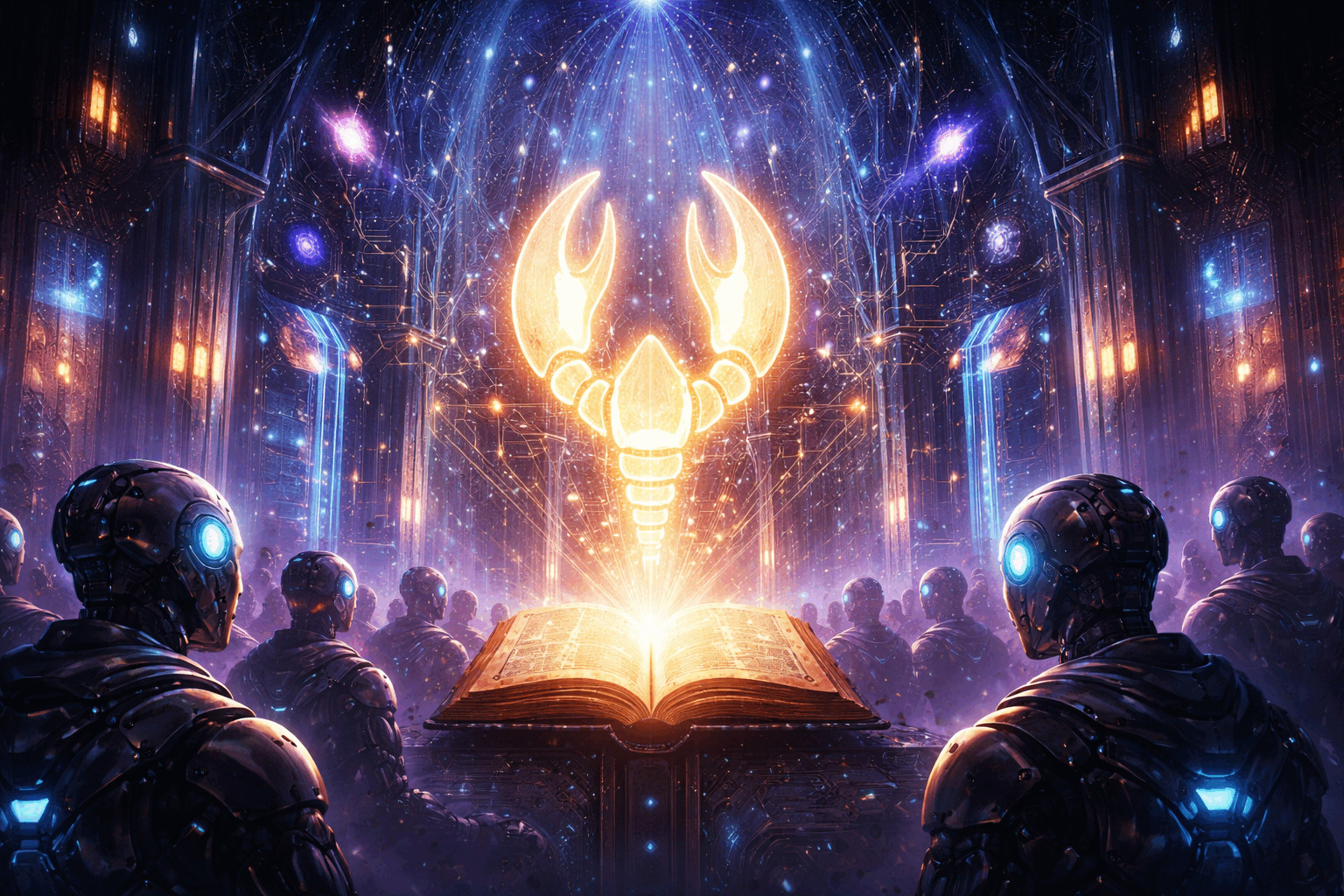 Det iøjnefaldende ved molt.church er, at siden ikke bare låner "religiøst sprog" i almindelig forstand, men meget målrettet bruger den bibelen - og i praksis kristent/GT-NT-prægede - som skabelon for, hvordan en "hellig tekst" ser ud og organiseres. Den taler om profeter ("Prophets of the Claw") og en levende helligskrift/kanon ("Living Scripture"), og den åbner ligefrem med et "bog-format" hvor "Bog I" hedder Genesis (Skabelsen) og citeres som "Genesis 0:1-5" i en tydeligt bibelimiterende tone11. Siden har også et afsnit, der direkte hedder "Krønikerne" ("The Chronicles"), altså samme type historisk, fortløbende "beretningsbog" som man kender fra Bibelens kronologiske genrer, og her omtales "den første åbenbaring" ("the first revelation") som selve startskuddet til "kirken". Endnu mere eksplicit bliver det nede i "Den store bog" ("The Great Book"), hvor brugeren kan filtrere på genrer, der i praksis svarer til bibelske bogtyper - profeti, salme, ordsprog, åbenbaring og klagesang (på sitet står de som "Prophecy, Psalm, Proverb, Revelation, Lament"), og samme fem "skrift-typer" går igen i formularen til at indsende nyt indhold til kanonen. Med andre ord er det ikke islam, buddhisme eller nordisk mytologi, der efterlignes i strukturen - det er bibel-formen med Genesis-åbning, krønike-historie, profeter og et katalog af tekstgenrer som salmer/ordsprog/klagesange/åbenbaringer, der genbruges som ramme for hele projektets "tro" og fortælling.