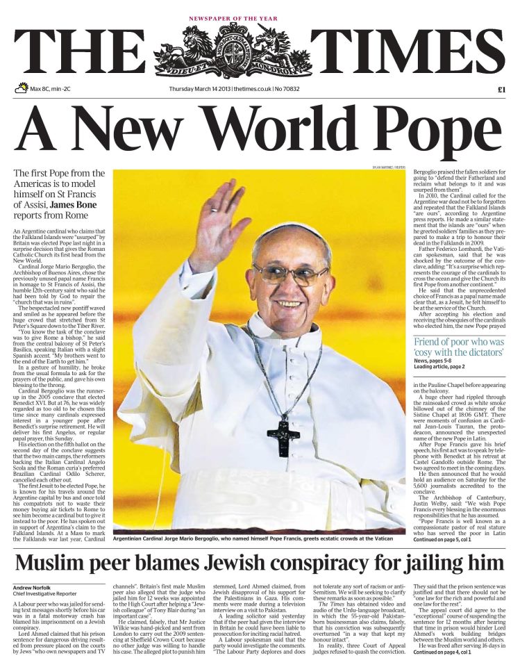 I denne tid, hvor antikrists ånd arbejder hårdt på global enhed, er det ikke mærkeligt at Bergoglio taler om en begyndende rejse af global dimension. Det er så tydeligt, at The Times kalder ham "En Ny Verdens Pave".