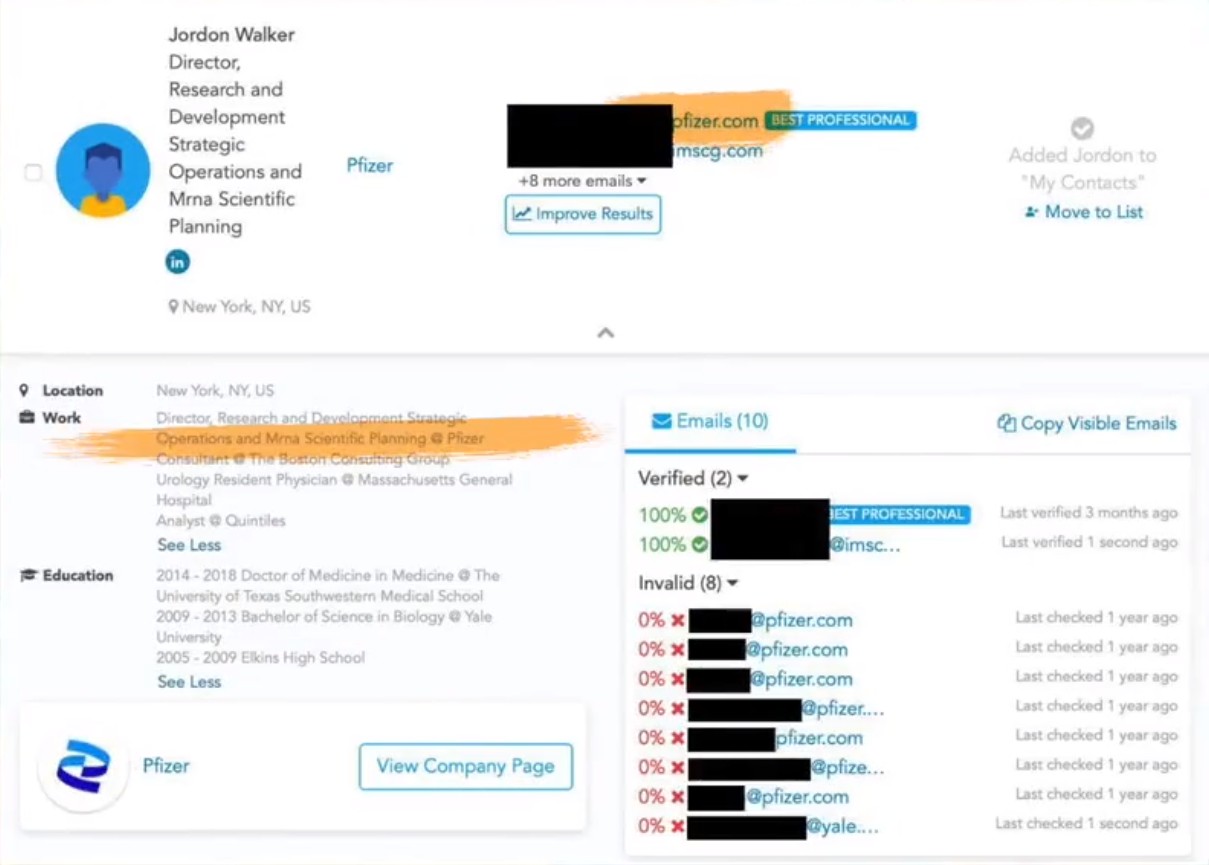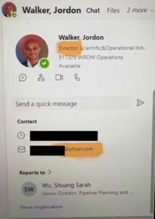 Selv har journalisten ikke været i stand til at finde ud af om Jordon Walker arbejder hos Pfizer, men leger med og siger, "OK, lad os slippe vantro et øjeblik og antage, at videoen indeholdt en faktisk Pfizer-chef". Men heldigvis har ingen i verden brug for elitens medier til at finde rundt i verdens informationer, og Bruce Y. Lee fra Forbes kan roligt slappe af, for der er mennesker der kan finde informationerne uden at være elitegodkendte journalister.