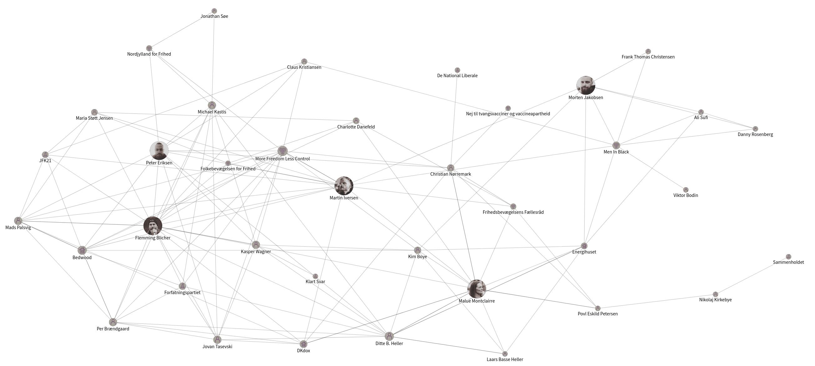 | “ | analysen giver for første gang et indblik i det politiske økosystem bag demonstrationerne mod nedlukningen... Altinget og Mandag Morgen viser desuden forbindelserne mellem fem personer, der spiller en særlig rolle i coronaoprørets aktiviteter. De er nogle af de mest velforbundne personer i netværket, og de er alle er frontfigurer i en forening, på en platform eller i et parti, der er centralt for modstanden.5 | ” |