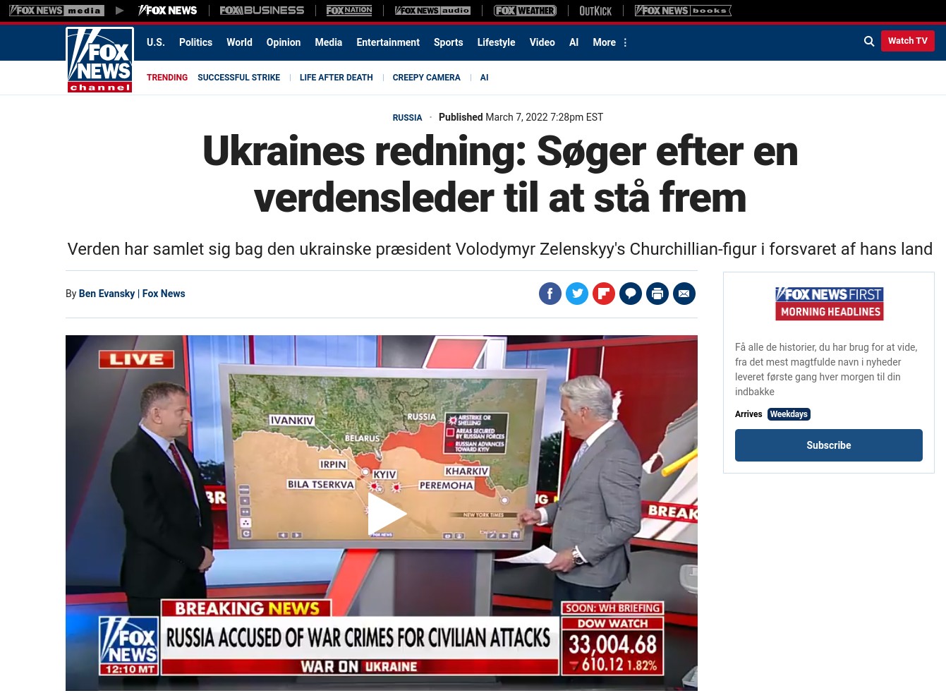 | “ | "Biden er ikke lederen af den frie verden lige nu, og for en amerikansk præsident at give afkald på den rolle er karrieretruende," siger Alan Mendoza, administrerende direktør for Henry Jackson Society i England, til Fox News Digital. Mendoza mener, at Boris Johnson er en verdensleder, der kunne være i stand til at udfylde tomrummet på verdensscenen, selv med en pinlig skandale under COVID-krisen, der bemærker hans imponerende lederevner... Andre verdensledere, der får en vis opmærksomhed på verdensscenen, omfatter den israelske premierminister Naftali Bennett. Bennett rejste til Moskva for et overraskende besøg hos Putin i weekenden. Bennett blev angiveligt givet velsignelsen af USA til mødet for at forsøge at mægle mellem de to sider. Israel har gode relationer til både Ukraine og Rusland, og Bennett ses som at have gode bånd til Zelenskyy, som han har været i konstant kontakt med de sidste par dage. Bennett fløj også for at møde den tyske kansler Olaf Scholz, inden han tog tilbage til Israel, ifølge Associated Press... Den tyske kansler Olaf Scholz er endnu et navn, der bliver nævnt som en person, der har indtaget en standpunkt omkring Rusland og ændret den mangeårige politiske kurs for sit land i forhold til dem. May fortalte Fox News Digital: "Det mest dramatiske skift, vi har set, er Tyskland. Olaf Scholz ser nu ud til at anerkende, at Putin udgør en trussel mod Tyskland og Den Europæiske Union." Men selvom Scholz har ændret sit lands efterkrigspolitik om ikke at levere dødbringende våben til krigszoner ved at tillade våben at blive sendt til Ukraine, så rapporterede Associated Press, at det inkluderede forsendelsen af 1000 anti-tank-våben og 500 Stinger overflade-til-luft-missiler.1 | ” |